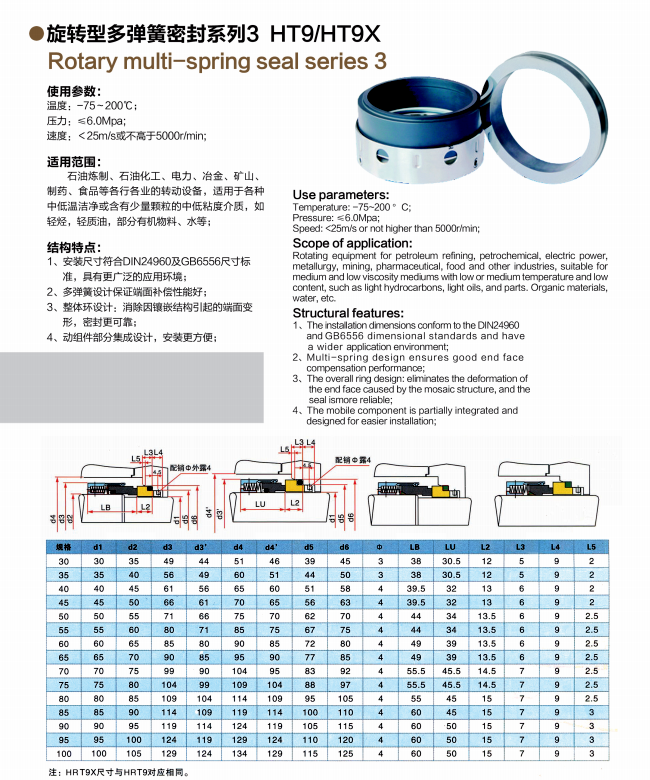 旋轉(zhuǎn)型多彈簧密封系列3 HT9/HT9X