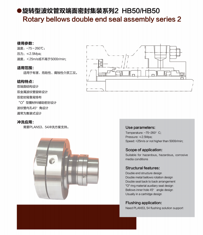 旋轉(zhuǎn)型波紋管雙端面密封集裝系列2 HB50/HB50